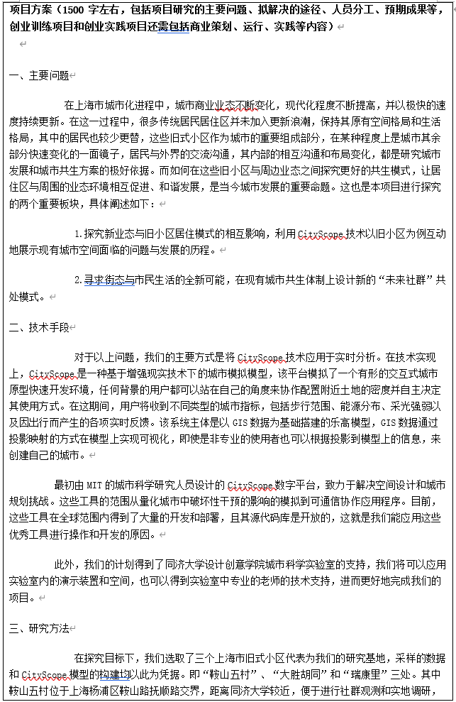 包括项目研究的主要问题、拟解决的途径、人员分工、预期成果等,创业训练项目和创业实践项目还需包括商业策划、运行、实践等内容。(附图)